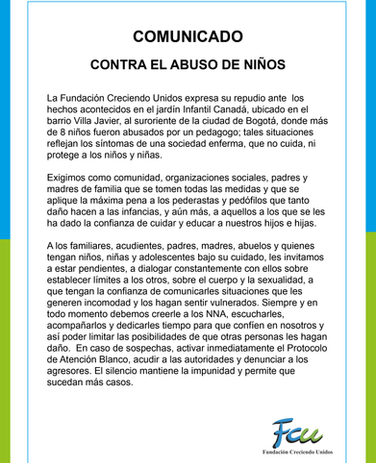 La FCU realiza el acompañamiento a la infancia trabajadora (niños, niñas y adolescentes trabajadores, desplazadas y en situación de vulnerabilidad) a través de la construcción de una nueva cultura de infancia que presupone el encuentro, el diálogo de saberes en un escenario de equidad en función de la defensa de sus derechos y en la toma de decisiones, siendo ellos y ellas verdaderos protagonistas de su accionar en espacios representativos